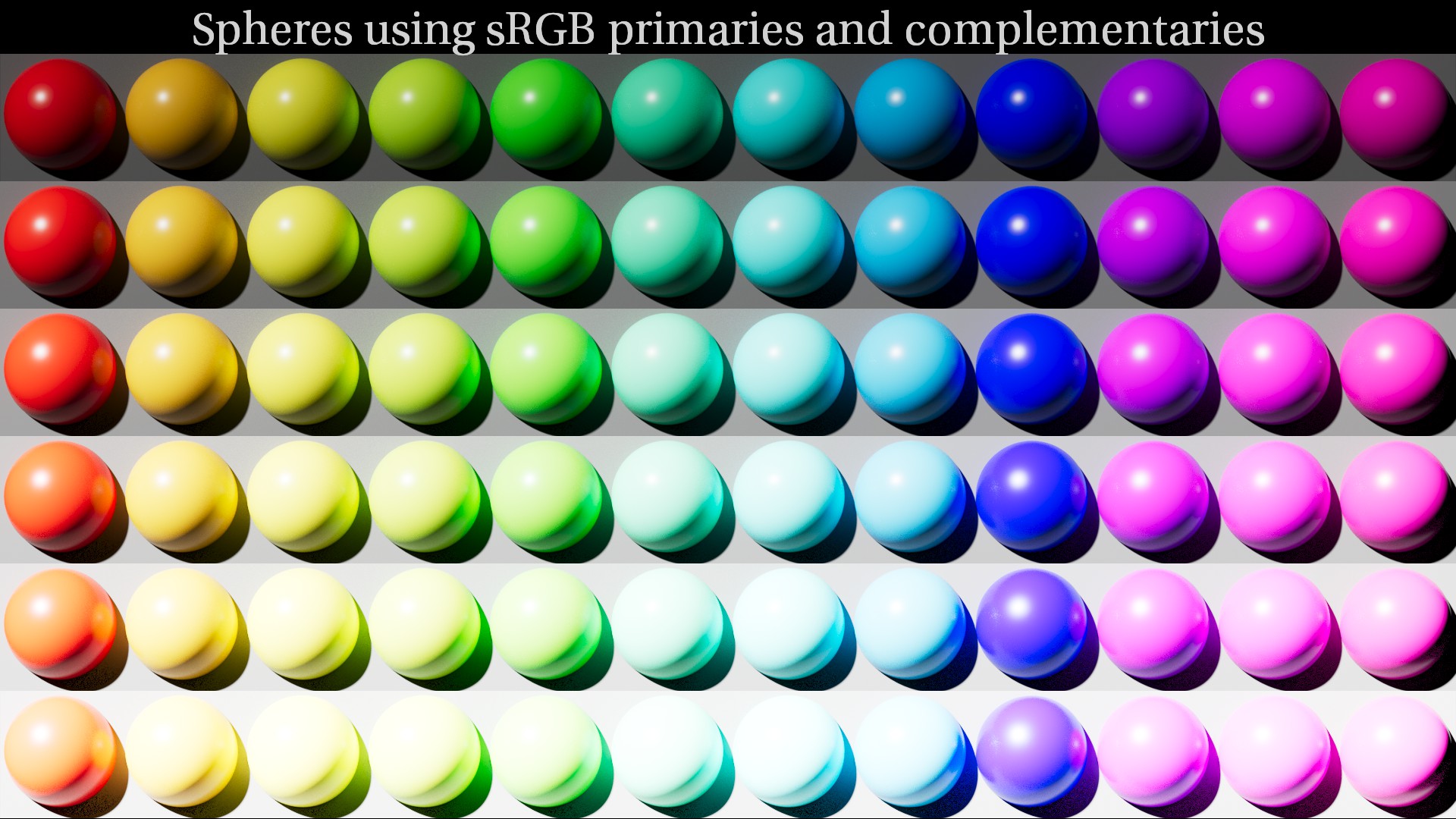 First ACES 1.X with the sRGB spheres and their hue skews: