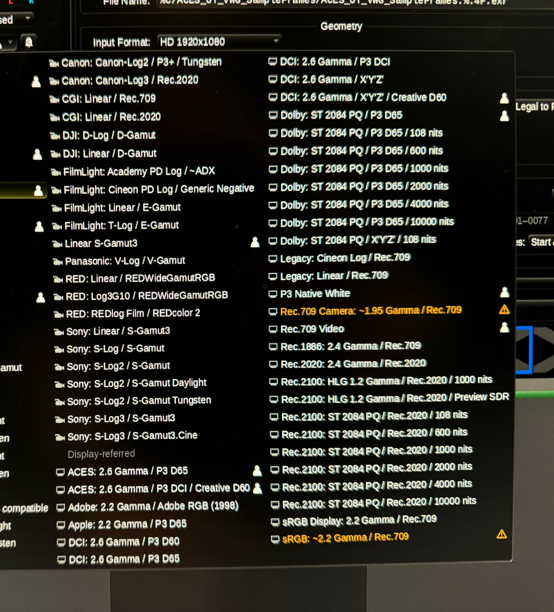 With that in mind I do like that the more common ones like Rec.709 are just called Rec.709 as opposed to a verbose name like Rec.709 BT.1886 100 nits (D65 whitepoint) or whatever. IOW, I’m advocating for abbreviated user names where possible.