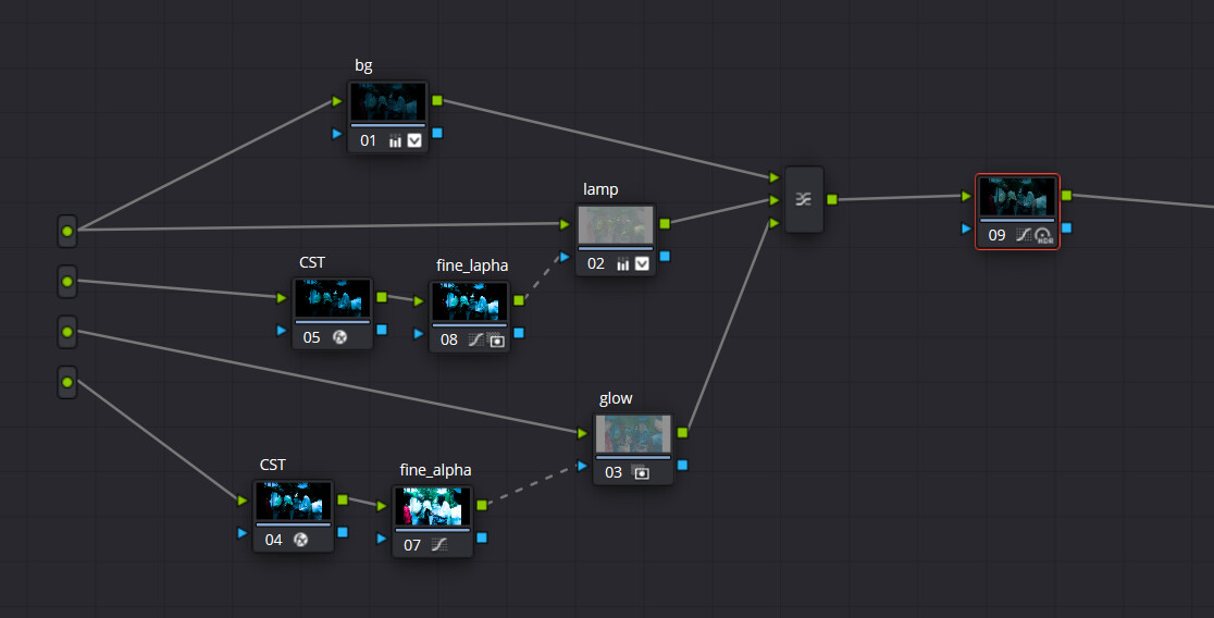 - Merging in Fusion for more control: Still doesn’t match the reference, and defeats the purpose of working with layers since proper compositing requires merging within the Fusion Clip