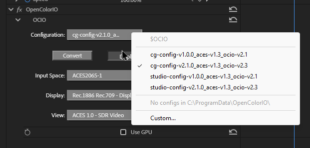 Good find on the OCIO plugin working with Premiere by the way.