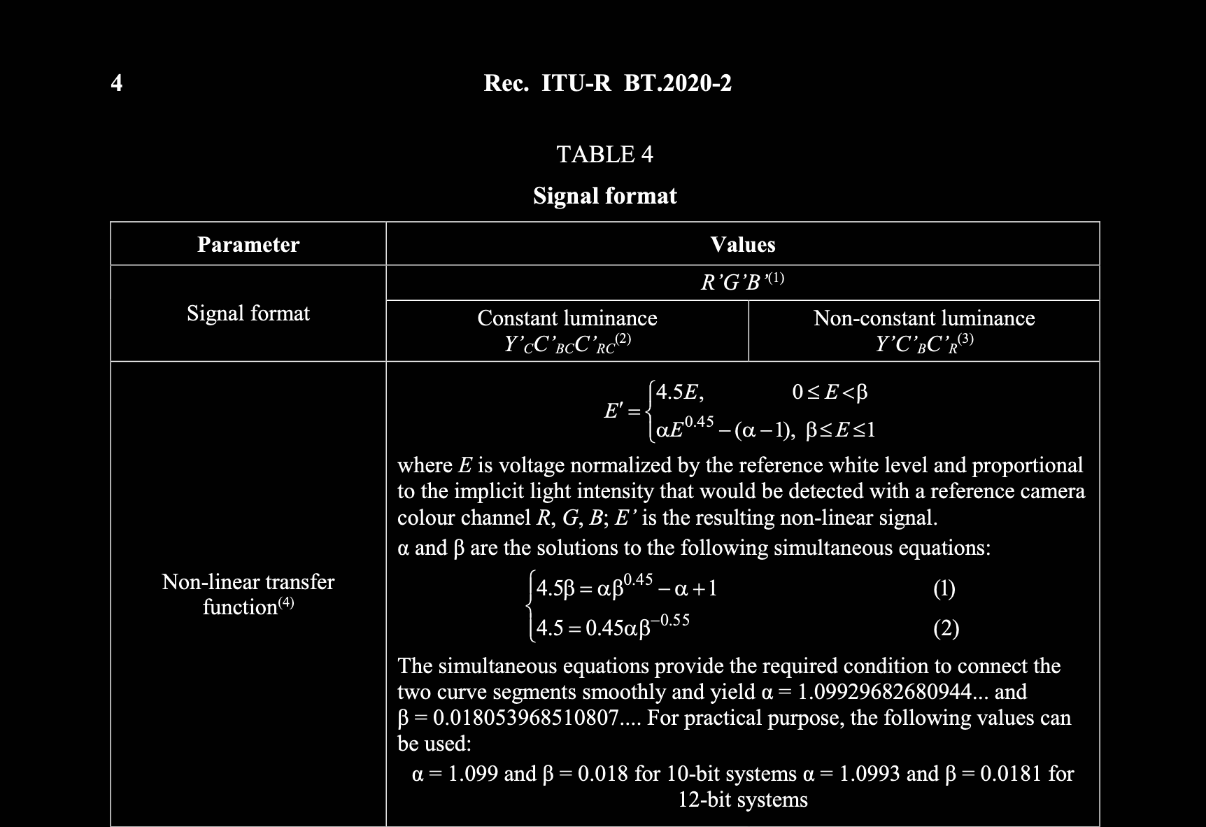 - An OETF encoding transfer characteristic.