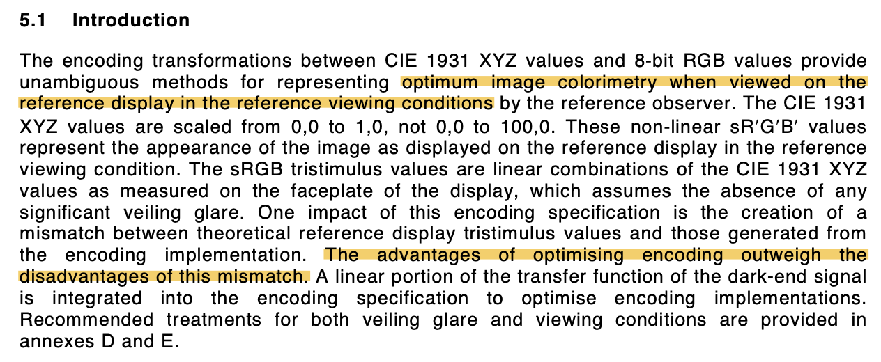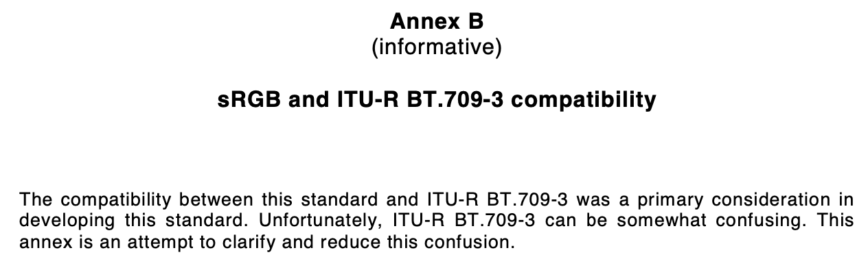 Daniele’s point is one that I also agree with, and probably will state that from my reading and interpretation of Daniele’s words, that in terms of the utterance of sRGB, in this context, it’s the reference EOTF we care about.